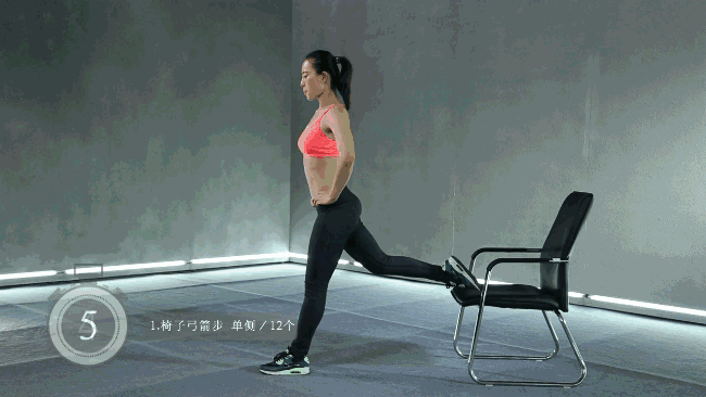 动作非常简单,放好椅子,右脚放在椅子上,放好后身体向下蹲,直至左脚呈90%后起身,单侧做12个,然后换另一侧也是12个。
