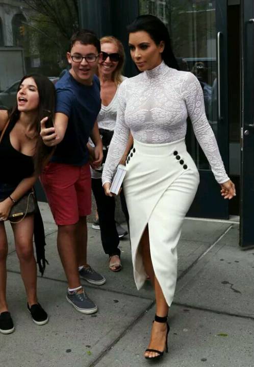 卡戴珊上身就直接变成了开叉裙,而且上衣还非常尴尬……