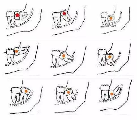 即智齿呈45度左右角顶在第二磨牙上。这种智齿如若不拔,容易造成邻牙病变,严重时需拔除智齿及第二磨牙,会严重影响我们的咀嚼功能;