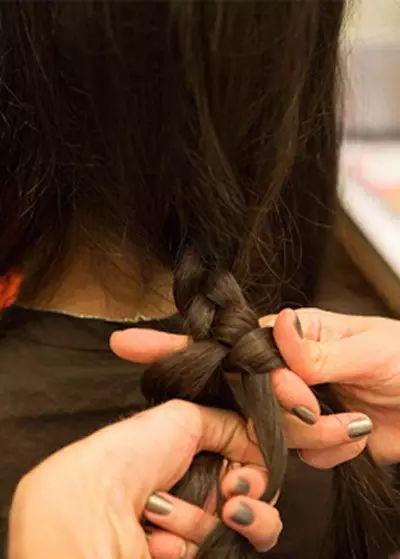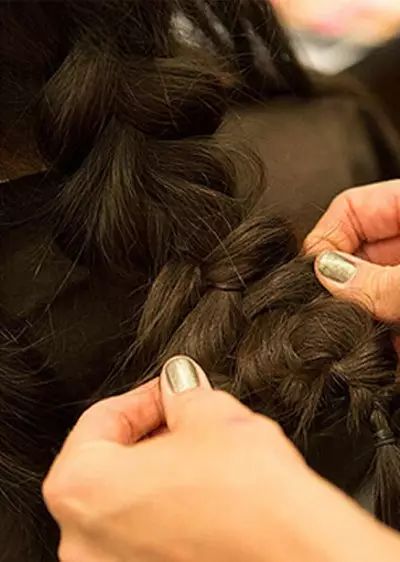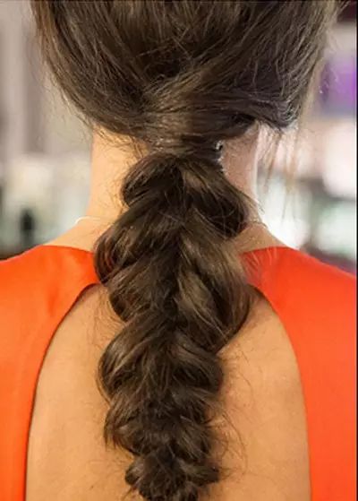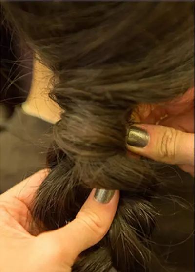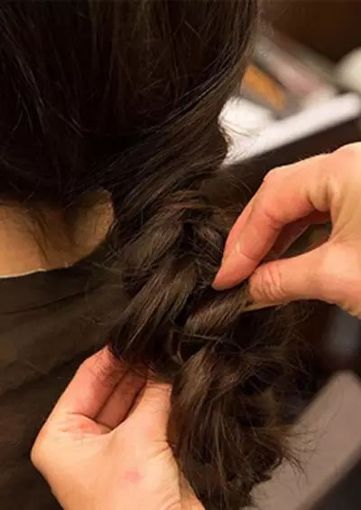 STEP2:编到发尾之后用橡皮筋固定,然后用手指将头发撕成更加自然的凌乱感。