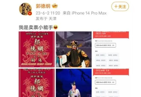 而在6月2日那天,郭德纲在社交媒体上发文表示“我是买票小能手”,这个只有七个字的声明立刻引来了无数网友的各种评论。原来,郭德纲是在宣布新的表演,即在麒麟剧社2023京剧巡演北京站的一场演出,这场演出将在梅兰大剧院举行,而郭德纲所说的“买票小能手”立刻引发了网友们的热议。