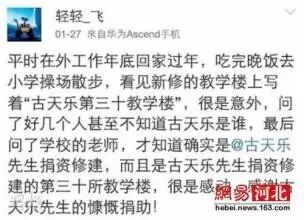 当电影《窃听风云3》的监制尔冬升在微博贴出一张名单,记录了古天乐自2009年以来在广西、贵州、云南等地出资千万元建造的61所小学,随后又有网友贴出了“古天乐小学”的照片为证。虽然古天乐本人不愿意就此事对外宣传,但是他的圈中好友们仍然愿意让他的正能量传递出去。