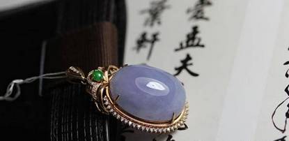 蓝紫色翡翠,也叫做茄紫翡翠,是一种偏向于蓝色调的紫色。颜色介于浅蓝紫和深蓝紫之间。一般的蓝紫色翡翠色调偏灰,认可度不如前面几种翡翠高。