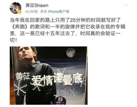 意思就是这首歌的四分之三都是黄征独立完成的,这个时候把《奔跑》牵扯出来,很多网友认为,他们三个是因为《奔跑》闹掰无疑了。