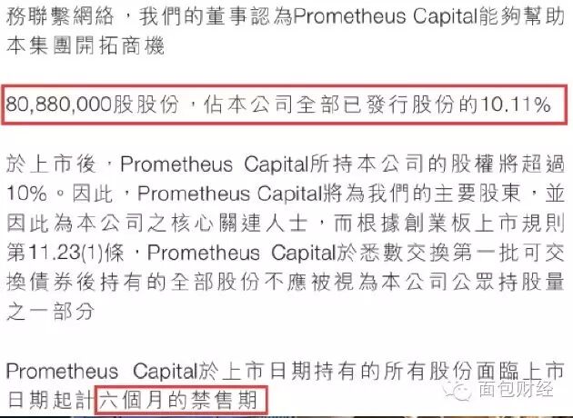 饮食概念主要经营高档连锁餐厅。面包财经(微信公众号ID:mbcaijing)翻查了招股书:2014年11月,饮食概念向王思聪名下的普思资本(Prometheus Capital)发行了一批可换股债券,该笔债券在上市前转化为股份。由此普思资本持有饮食概念10.11%的股份,共持股8088万股,持股成本约折合3112万港元。