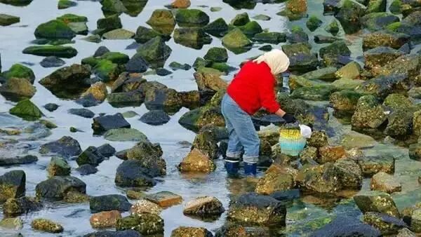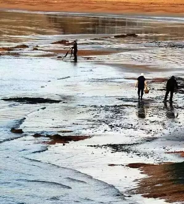 退潮赶海是每个海边少年必备的成长记忆,早上天蒙蒙亮,大海已经静悄悄地退到深处,沙滩被裸露出来。小海蟹小蛤蜊还没有来及逃跑,这时候拿着小铲子小桶的赶海的人已经瞪大眼睛开始满沙滩寻找了,银沙滩的沙子非常细,脚踩在上面软软的很舒服。贴在石头上的海蛎子,壳子有点硬,必须要拿坚硬的铲子一个一个铲下来,不一会儿应该就会收获一小桶小鱼小虾小贝壳了。