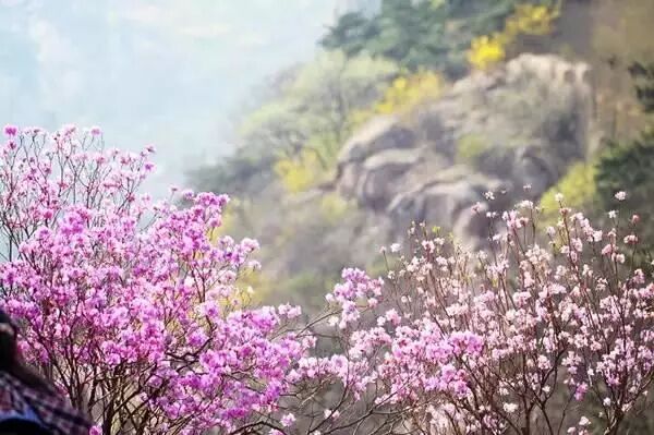 每年4月,大珠山就换了新容。满山的杜鹃花齐齐绽放,整个山头都是紫红一片,让这片安静的山谷也都热闹了起来。杜鹃绽放时,山谷里的连翘、芍药、玫瑰等也悄悄跟着开了起来,给整片山谷又加了一些颜色。大珠山的云雾在春天也十分神奇,若是去早了,朦朦胧胧遮盖着山间的颜色,让人浮想联翩。
