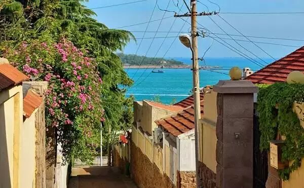 青岛的街巷总是产生令人惊喜的风景,五月正值蔷薇花开时,处处绽放的蔷薇花墙让老房子们又文艺了起来。依山而建的别墅,高低错落,沿着长长斜坡向下走着,依稀就能看见不远处的蓝色大海。蔷薇花和这片海这片老建筑就自然地构成了一幅画,微风吹落几朵蔷薇,砸在地上散开铺成一片,这地上也沾染上了香味。