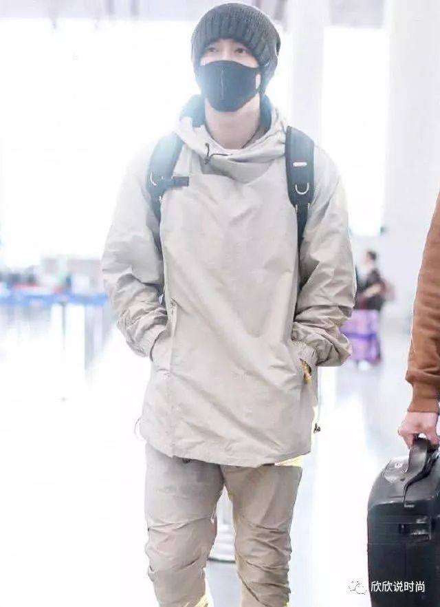 韩庚之前在机场的这一张街拍照也是非常值得欣赏的,了解一下韩庚的这一身搭配吧,韩庚穿着一件米色的带帽卫衣配上一条同款长裤,这一身米色搭配也是显得韩庚非常柔和啊,头上戴着一顶灰色头套是不是很映衬这一身穿扮呢?
