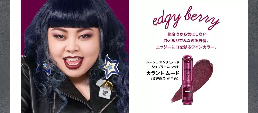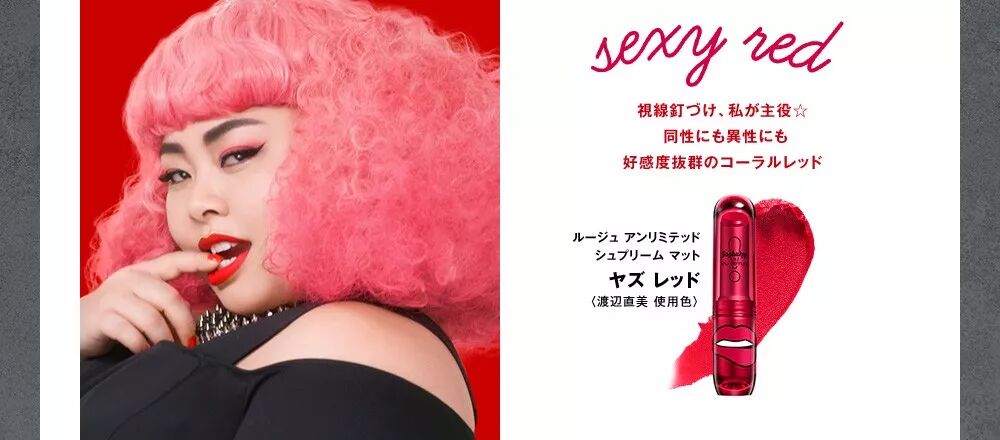 看名字就知道这一次联名绝对不走寻常路,共有四大色系,分别为Sexy Red、Lovely Nude、Funky Pink、Edgy Berry,16支唇膏中有9支限定款。渡边直美也选择了四支契合自己态度的唇膏亲自下场示范。