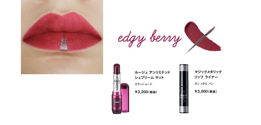 观察力超群的同学会发现渡边直美的唇妆还有一些亮闪闪?其实是叠加了新款的金属唇线液(共四色)让哑光唇妆瞬间立体起来。涂着去蹦迪绝对是最闪亮的星!