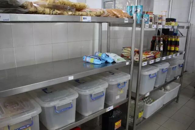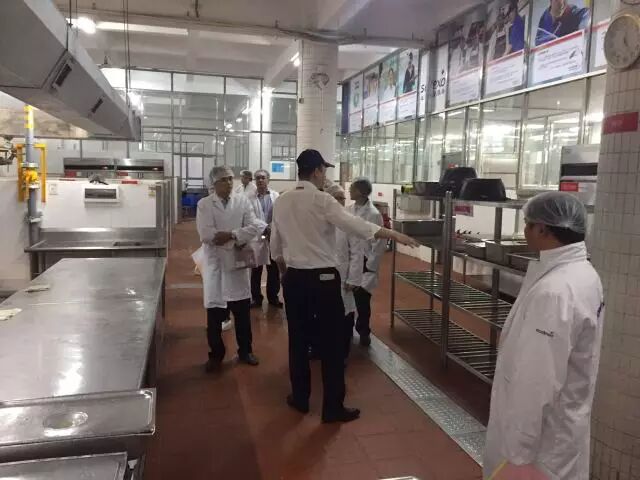 考核期间,所有考核成员实地考察饭堂,仔细检查饭堂的各类食材、卫生等。