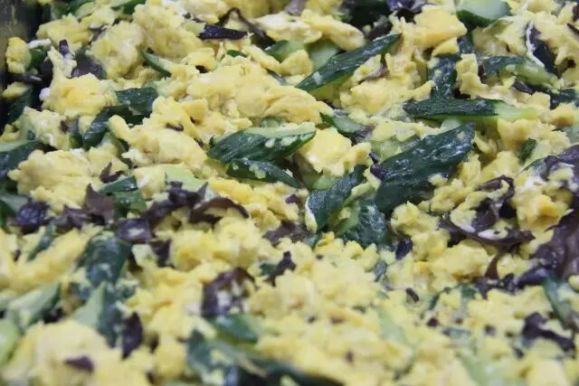 木耳黄瓜炒鸡蛋:鸡蛋比黄瓜还多,这菜炒得比较有良心。
