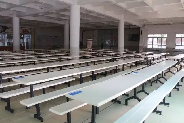 食堂内的桌凳摆放整齐,每次就餐前后都进行清洁,保持干净舒适。