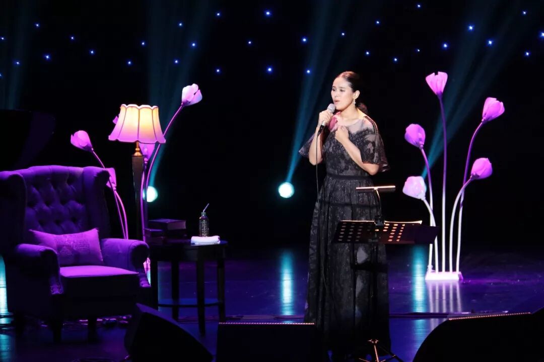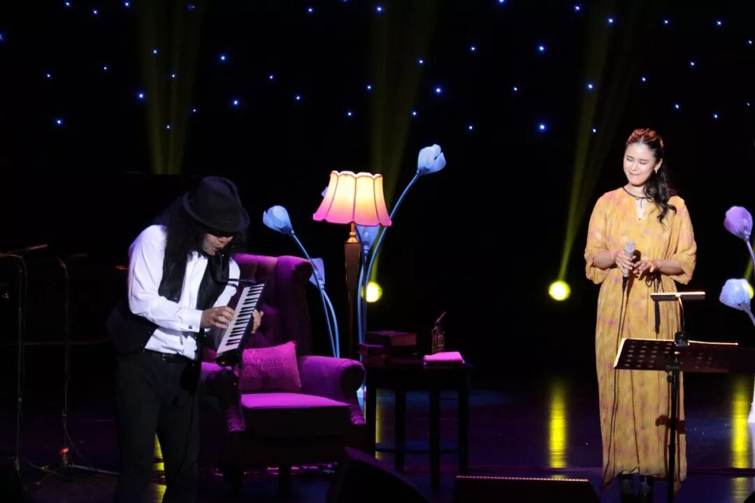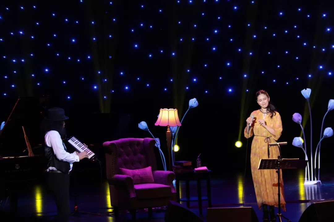 19点半,女神着一袭黑色纺纱裙亮相,她轻轻的走向舞台中央,向大家鞠躬,简单的日语介绍,便开始了这一夜的音乐之旅。不出意料的“The rose”开头曲,一开口就让听众们折服,随着熟悉的旋律渐渐进入到手嶌葵治愈系的世界里。之后的每一首歌我都听过,但又都叫不出名字。她每次唱完一曲都先说一声谢谢,然后浅鞠一躬,再浅浅的蹲一下表示感谢。她的一颦一笑都是优雅端庄的,但也饱含着可爱的少女气息。中场休息前那一首俏皮的日语歌更是点燃了全场氛围,大家随着节奏打起拍子,钢琴伴奏半蹲着弹奏钢琴,手嶌葵也一边唱一边舞动起来,那样子像极了18岁可爱的少女。