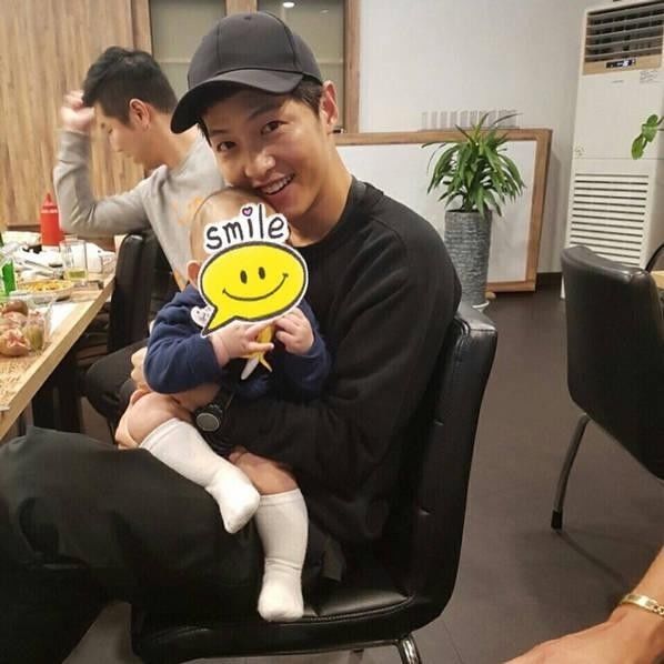 近日,网络曝光宋仲基一组超级有爱的图片,图中的他身穿休闲,爱意满满地抱着一个萌娃,画面十分有爱。网友纷纷称赞宋仲基“奶爸范儿十足”,还催婚、催生了起来,“赶紧自己生一个”。据说双宋婚期定在10月底,小编先送上祝福。