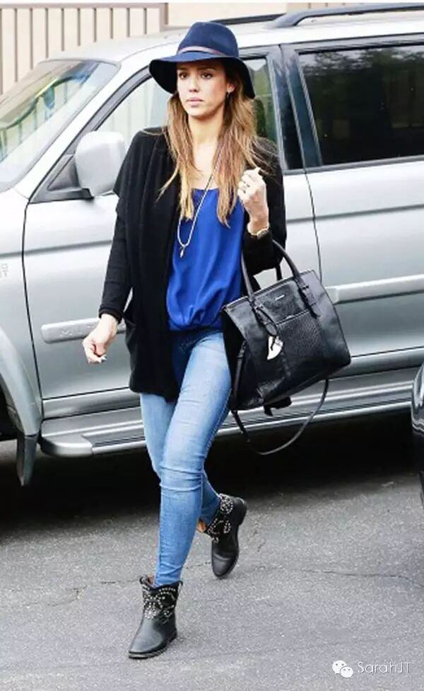 每个女生都有公主风的幻想,Jessica Alba将公主风长裙搭配上深色毛衣,不要让公主风变成阿花风。