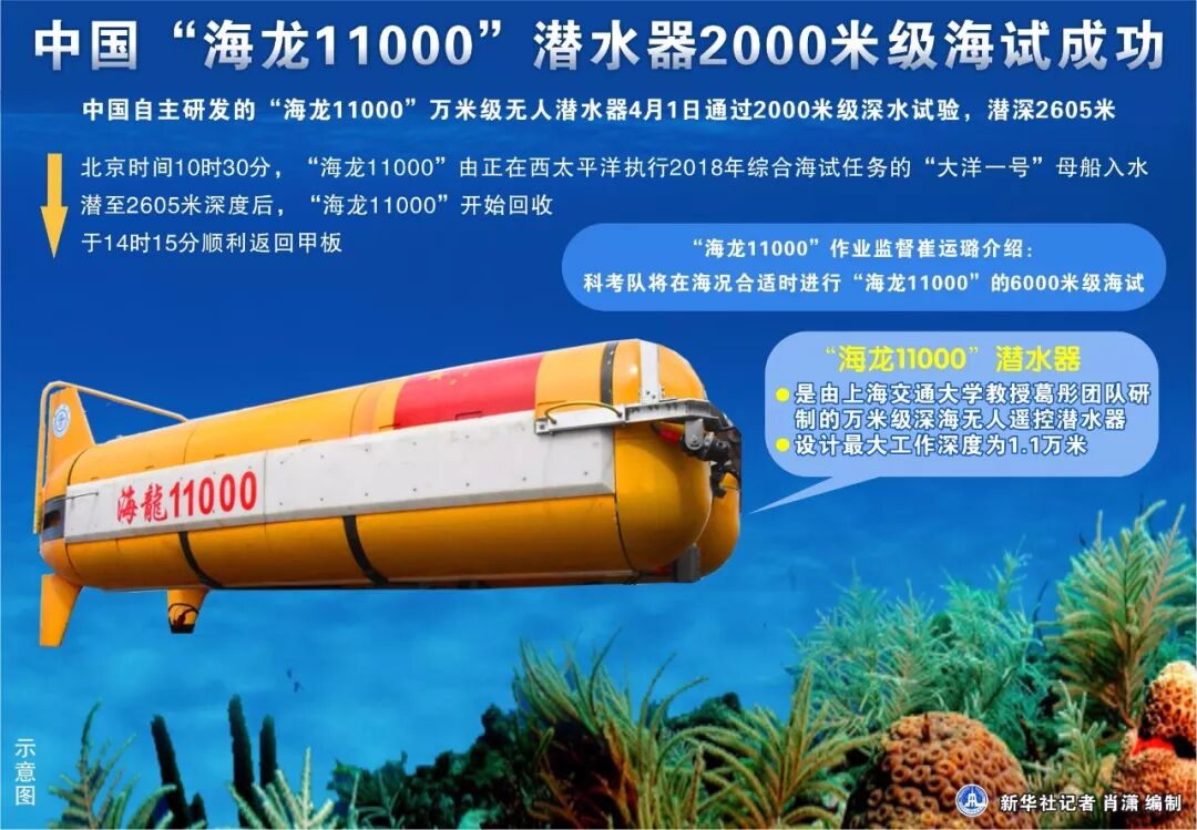 ●中国自主研发的“海龙11000”万米级无人潜水器通过2000米级深水试验,即将进行6000米级海试。