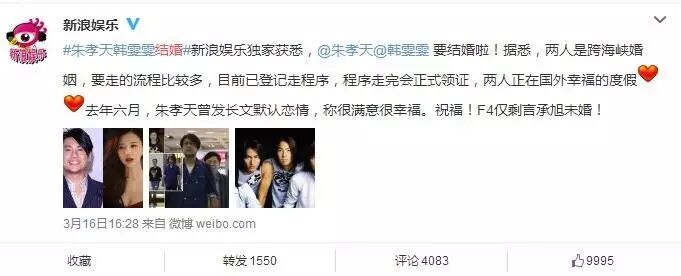 朱孝天韩雯雯结婚了,童年的又一枚男神找到了归宿。想起前几天结婚的何润东,难道是因为春天到了,男神们都动成家的心思了吗?……