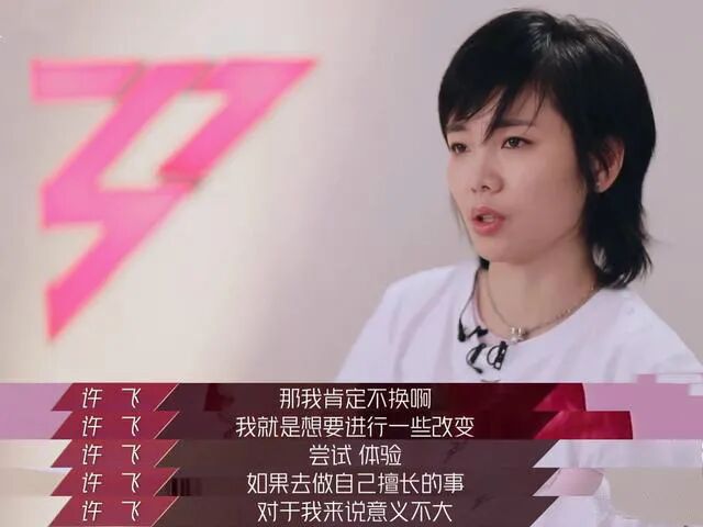 相比于其他战意正浓的姐姐们,许飞显得过于格格不入,她在加入“艾瑞巴蒂“组后,甚至有人说过,”没想到有一天会发现许飞才是最正常的那个人。“