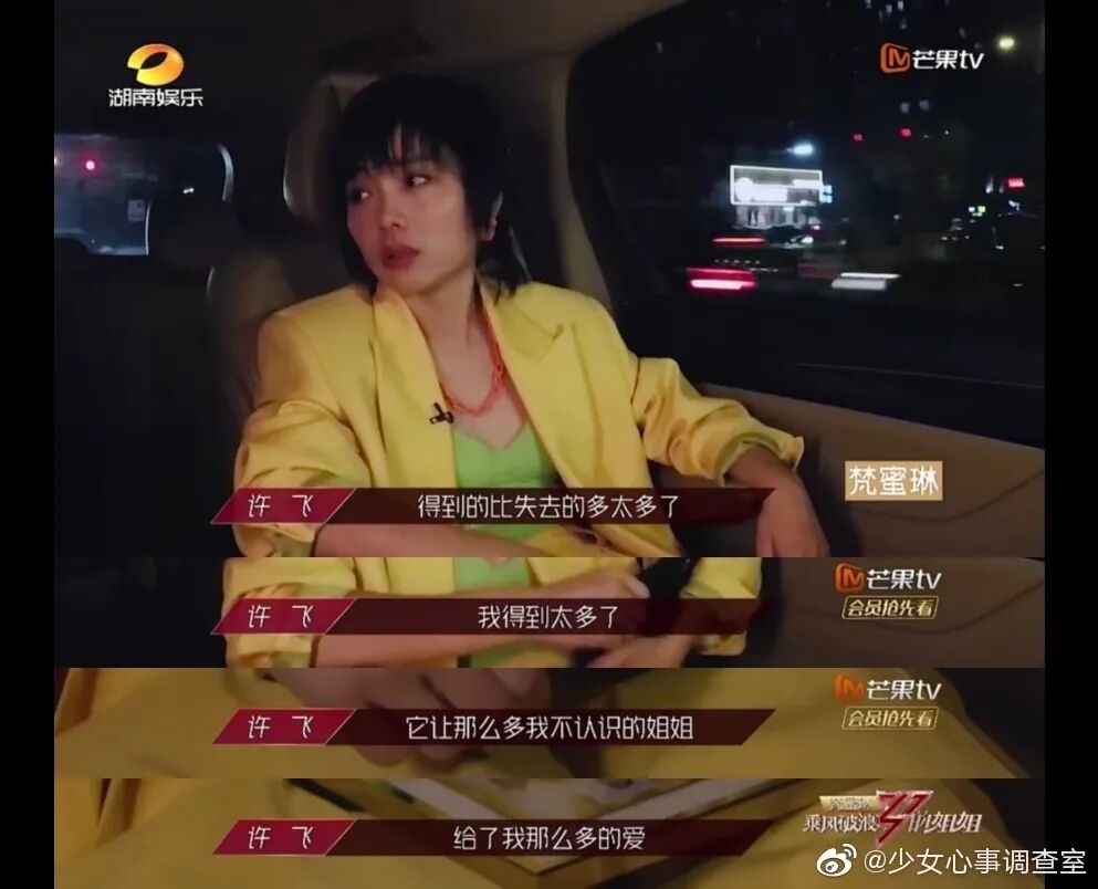 我喜欢上了这样的许飞,因为普通人如我,并不会像浪姐里30+的大多数女明星那样,光芒万丈、颜值与才华逆天、一直或者大部分时间活在被吹捧的日常里,肉眼可见她们骄阳似火、兴风作浪、野心上脸。
