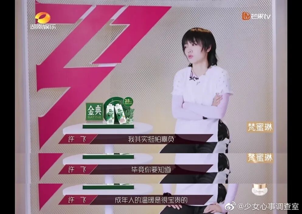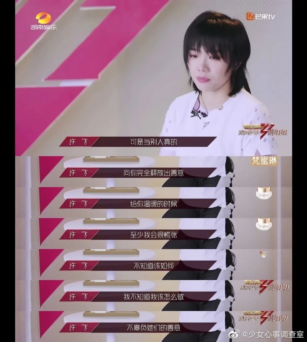 没有拉踩的意思,我也很爱其他姐姐们,只是突然发现,原本以为攻击性很强的许飞,其实是个内心过于柔软的“娘妹子”。