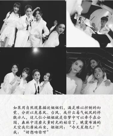 后来,许飞在微博里呈现了一个诗人才有的才华。她镜头下的姐姐,她为姐姐们写的小作文,兼具爱与浪漫,幻象与流光,是令人意想不到的离别诗:
