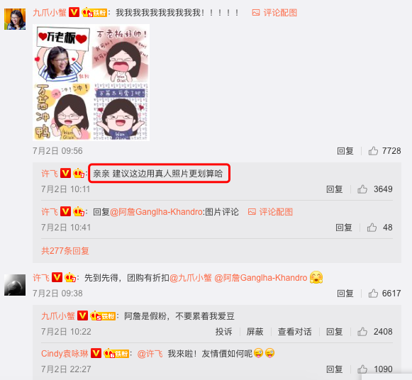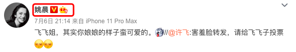再有就是“害羞脸、娘娘地”为自己踢馆浪姐做拉票。引来姚晨、庞颖、詹青云等明星名人的日常打投。