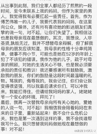 权威消息是这样的:昨天下午,国家禁毒委员会办公室微信公众号“中国禁毒”发布消息称,2月26日11时30分,北京警方根据群众举报,将在朝阳区亮马河某公寓内吸食毒品的傅艺伟查获,同时抓获的还有黑静环、付意敏两人。经审查,傅艺伟尿检呈冰毒阳性,本人对其容留黑静环、付意敏共同吸食毒品冰毒的违法犯罪行为供认不讳。
