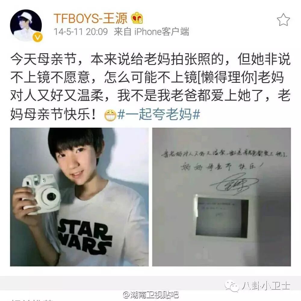 wuli王源是个会疼妈妈的小男子汉。工作忙就养一只嘟嘟给她解闷,在外地工作也会给她买礼物,私人行程被拍时会保护她,有时间就和她一起买菜逛街看电视剧,听她的叨唠时时把她的叮嘱放在心上。出门在外只希望他身体健康是最温暖最母亲的嘱咐。感谢养育出这么棒的王源,母亲节快乐