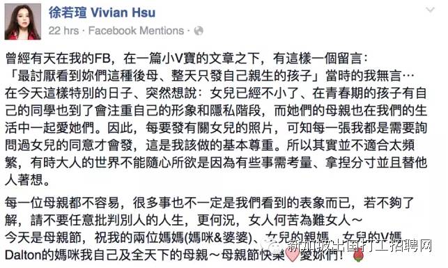 徐若瑄绝对算得上是新加坡妈妈们的好榜样,为了生娃,不顾高龄生育的危险,在床上躺了100多天,发福长胖了36斤,把作为明星最宝贵的资本都牺牲了。