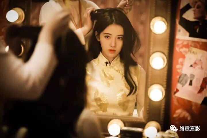 鞠婧祎坐在化妆镜前,镜子中的民国美女靓丽清新,旗袍的立领端庄典雅,托起这张东方标准美人的脸,潜藏着深邃的优雅,鞠婧祎搭配披肩的长发,妆容精致,尤其是鲜艳的大红唇更衬的人明媚动人,古典韵味十足。