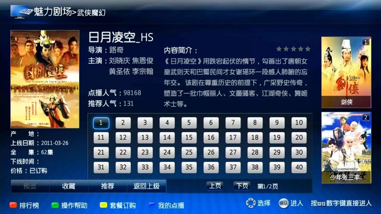 《日月凌空》是南京电影制片厂出品的古装电视剧,由吴因易编剧,刘晓庆、黄圣依、焦恩俊、徐百卉及马晓伟主演。全剧以唐高宗中期至神龙革命结束共四十余年的历史为背景,讲述了一代女皇武则天在巴蜀才女谢瑶环的帮助下逐渐巩固权力、登上帝位、治理国家直至最终被逼退位的事迹。