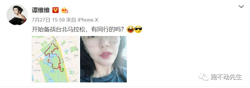 近日,著名摇滚歌手、音乐达人谭维维在自己的社交媒体晒出跑步记录,并发文称:开始备战台北马拉松,有同行的吗?