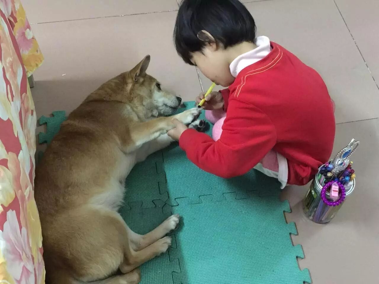 孩子和动物是天生的好玩伴,很希望中国的家长们,放下你的担心和成见,教会孩子如何与动物相处,他们之间的爱,不会比人与人之间的少。(站里第一只松狮,现在它叫波比)