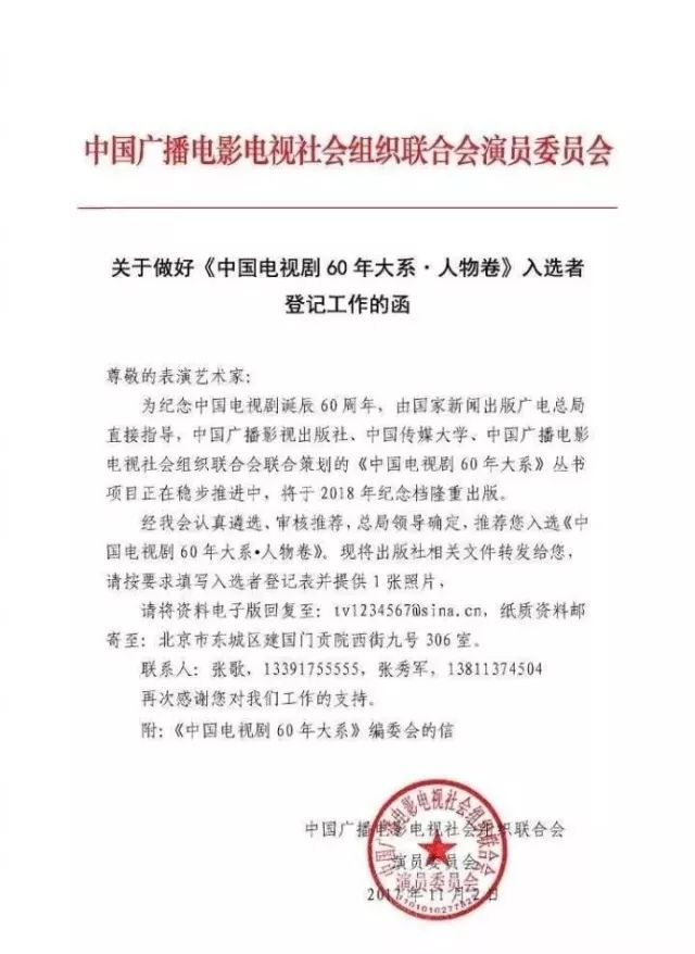 为纪念中国电视剧诞辰60周年,由国家新闻出版广电总局直接指导,中国广播影视出版社、中国传媒大学、中国广播电影电视社会组织联合会联合策划的《中国电视剧60年大系》丛书项目正在稳步推进,将于2018年纪念档隆重出版。