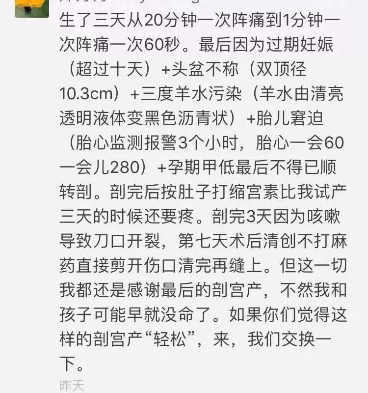 ——“剖腹产啊,就是拉一刀啊,完全不能体会顺产的那种十级痛感啊!”