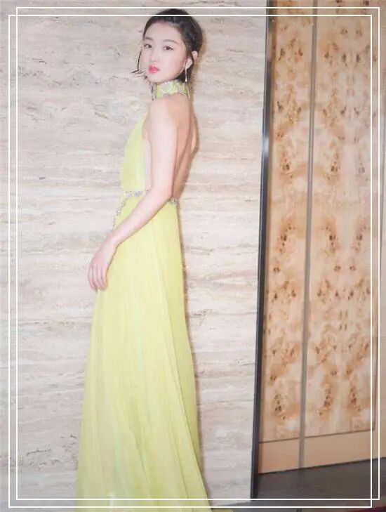 黄色的领口连衣裙穿在周冬雨的身上,展现了她纤细修长的身材,而连衣裙的浅色也让周冬雨展现了她白皙光滑的肌肤,牛奶般的肌肤真是让人眼前一亮。