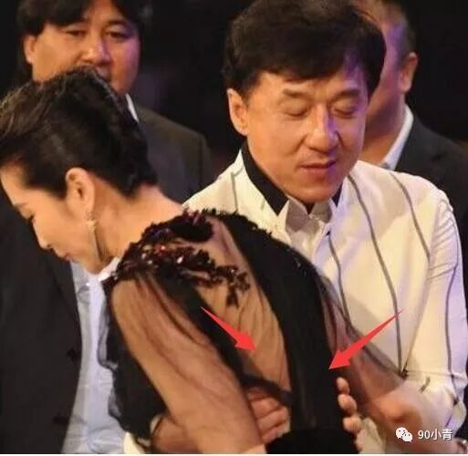 成龙与李冰冰的合影,在一起活动现场,成龙迎接走过来的范冰冰,动作似乎不太得体。