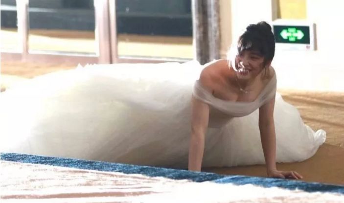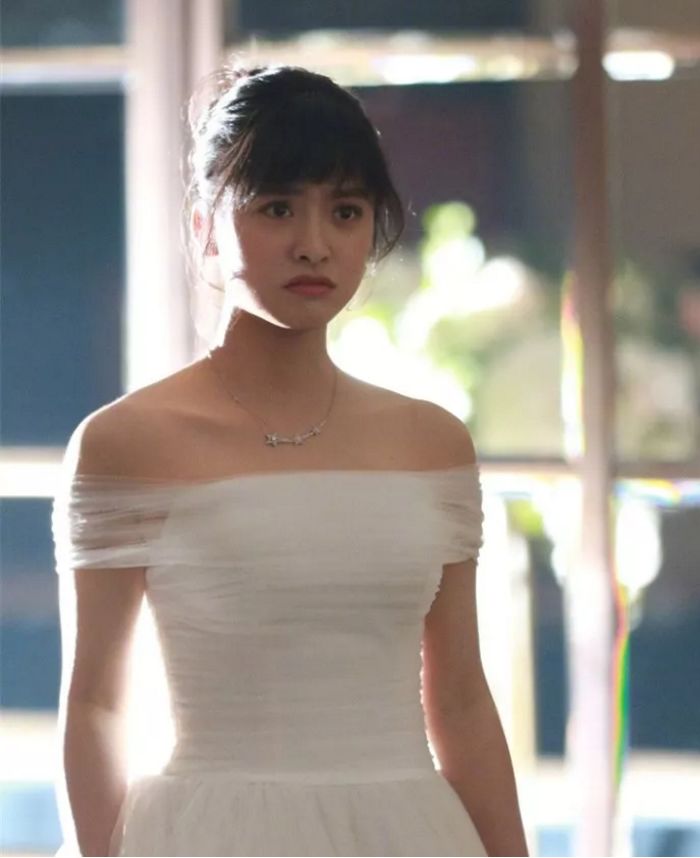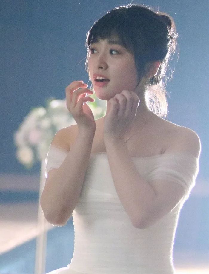 从曝光的一组剧透图来看,一字肩的小礼服并没有体现出她任何优美的曲线,反而显得她膀大腰圆,没有任何美感。