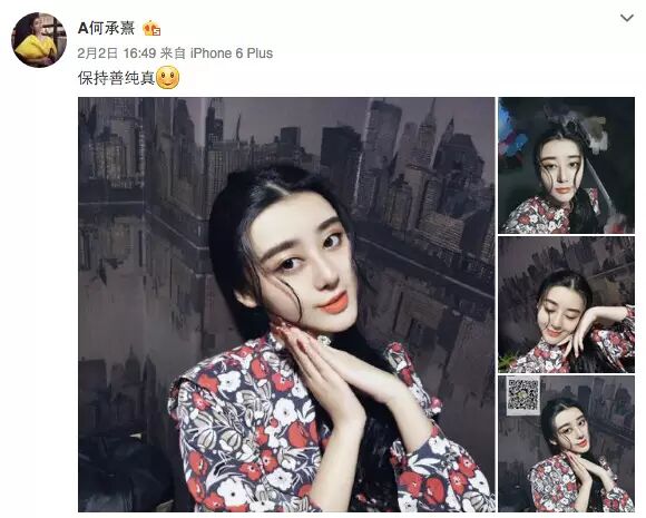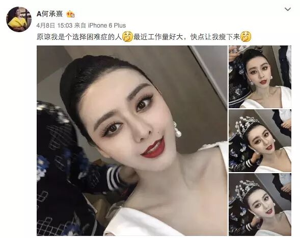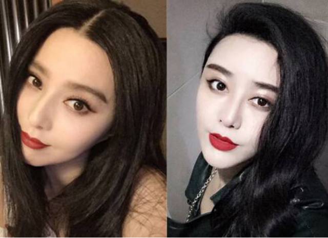看她微博上po的图片,冰冰眉、冰冰眼,还有和冰冰几乎一样的小鹰钩鼻。