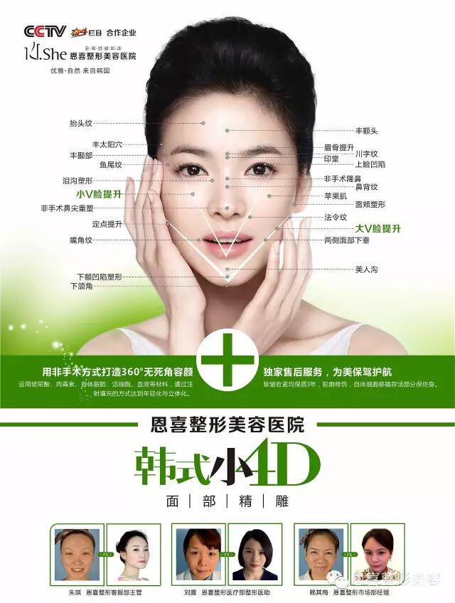 韩式小4D面部精雕根据每个人面部特点和美学原理,综合考虑每个求美者的要求、个性,结合各种先进的五官整形和面部年轻化的方法,设计整体的美颜方案。比起传统的单项整形,韩式小4D面部精雕有着耗时短、无需开刀、效果好等优势,使它超越了单项面部整形。