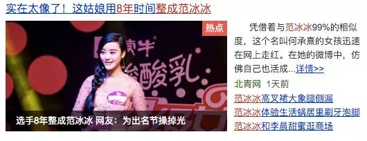 据说,她用了8年的时间,把自己整成了“范冰冰姐妹款,这一次被发现是因为在超女海选时被错认为范冰冰。