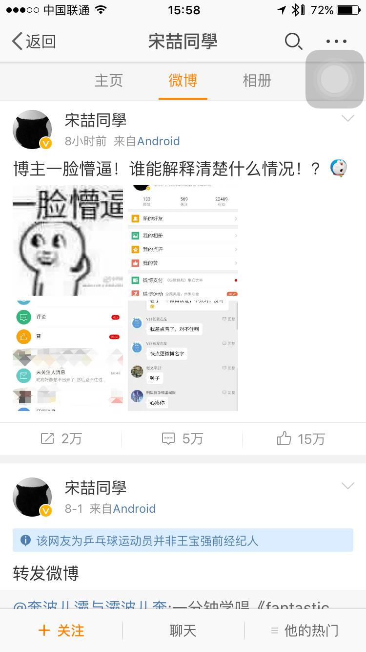 这位一夜爆红的同学是个乒乓球运动员,事发时应该已经睡着了,一开始宝宝战队狂抨击,后来被证明是只是同名而已,这位宋喆同学可是河南省乒乓球省队的运动员。后来画风就变了,一堆迷妹问张继科和宁泽涛的电话,而更多人则是期待他醒来后看到微博炸了的懵逼脸。