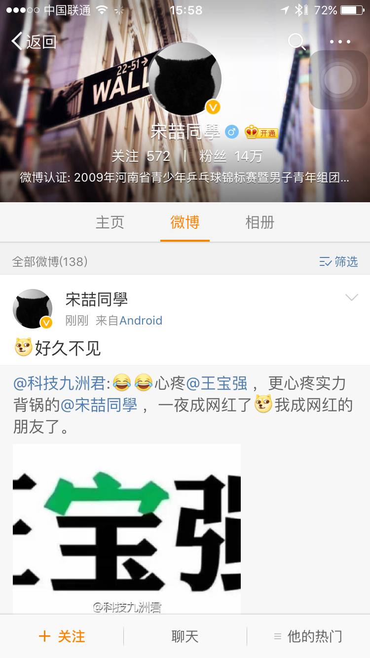 作为一个常年熬夜患者,终于感受到了晚睡的好处!因为老师目睹了昨晚宝宝婚变的一出大戏!踏着网友的传送门各个踩点,而作为一个吃瓜群众,更有幸见证了网红宋喆的一夜爆红,原因就是宋喆和王宝强经纪人重名。