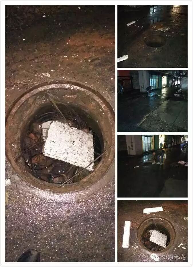 昨天的大雨将宜居康郡后门小路上的下水盖不知道冲到哪里去了。庆幸的是有好心人正在做好事。真心希望这两条小小的水泥条能提醒过往行人注意安全。