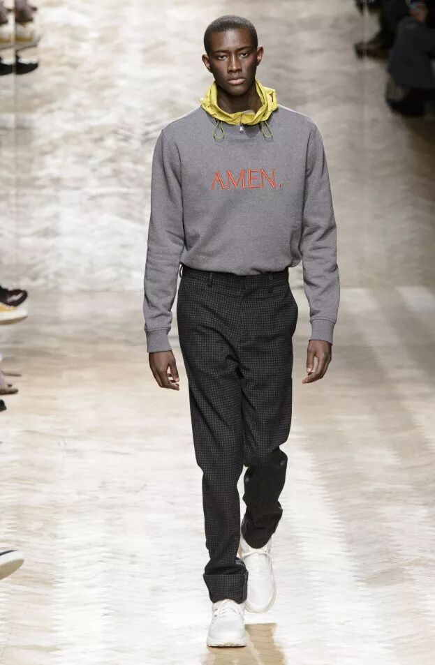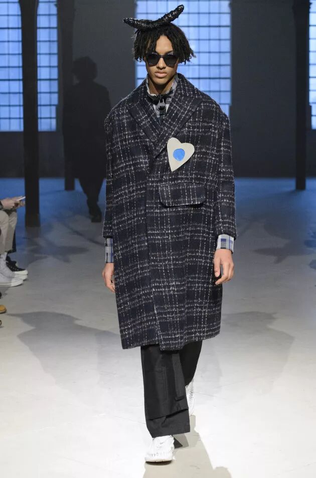 Qasimi的T台秀刻画“现代流浪者”,其灵感源自全球文化对格纹的应用,而格纹在不同社会中有着不同含义。该T台秀主打量感版型、舒适奢华风及运动格调。蓝色大型条格用于各款型,而马德拉斯格纹单品则采用褪色而浓郁的秋季配色。