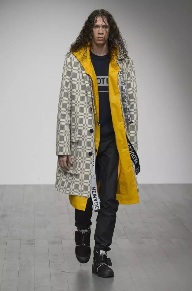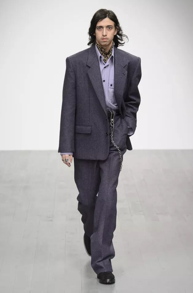 自从其首个“英国脱欧”系列占据头条并获得时尚界关注之后,这位英国设计师进一步打磨自己的技能。本季,他参考80年代。紧凑的轮廓以时尚都市潮人和身穿运动套装的叛逆者为灵感。在动荡时代,他选择改造经典单品,诠释自己对未来的畅想。