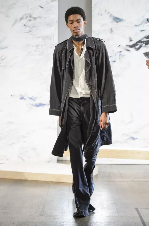 通常,Craig Green T台秀将最好的作品留在最后,但重头戏之前的作品同样给人留下深刻印象。Craig Green的系列别具一格,他逐渐地推出更简约的单品,如丹宁牛仔裤或平纹针织,赋予其考究而独特的细节和图案。他对纹理、细节和色彩的拿捏恰到好处。