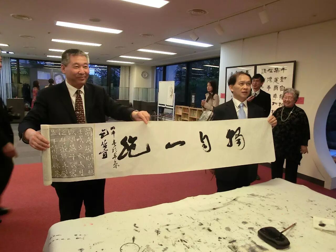 东京的篆刻家马景全先生等也亲临现场助阵,并为参观者表演了书画艺术,同样博得了参观者的喝彩。